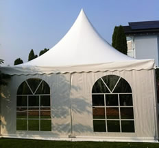 1 Pagode (5x5) | 1 x Zeltboden (25 qm) | 2 Bankettisch | ||
